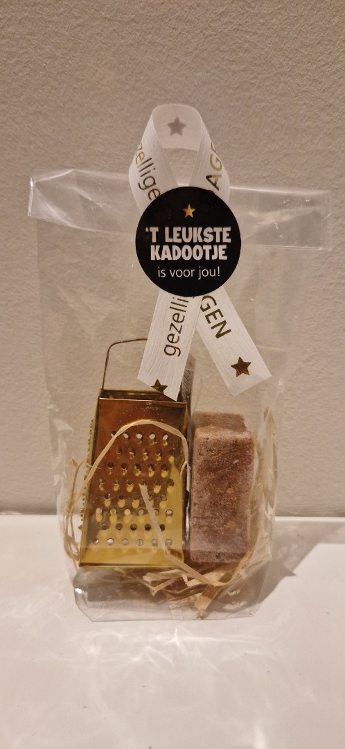 Cadeauset met een geurblokje | amber & een mini rasp | goud